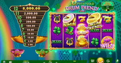 Den spillbare demoen av 12 Pots Of Gold Drum Frenzy (Gameburger Studios) er en av de nyeste utgivelsene utviklet av Gameburger Studios. Den ble lansert rundt 2026 og det har et Irish drums unleash lucky gold-tema. Den har Med volatilitet en RTP på 96.05% og en maksgevinst på opp til 5 165x innsatsen din.