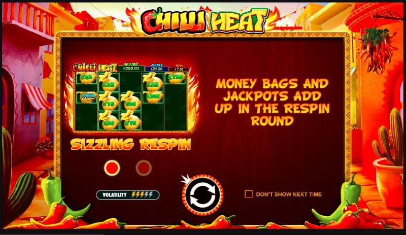 Chilli Heat som spill regnes som et spill som bruker middels volatilitet. Det betyr at du vil oppleve gevinster med middels hyppighet og som regel at utbetalingene er ganske sterke. I motsetning til slots med høy volatilitet der utbetalinger kommer svært sjelden, men der gevinstene kan være enorme. Eller sammenlignet med spill med lav volatilitet der små gevinster treffer hele tiden, mens du vanligvis ikke får store premier. Dette spillet passer godt for spillere som vil ha et lite steg opp i spenning enn i lavvolatile slots som eller til og med . men fortsatt liker mange mindre gevinster fremfor noen få store gevinster. Hvis store gevinster er det du liker best og du aksepterer at du ofte kan tape innskuddet ditt, anbefaler vi å prøve spill med høy volatilitet som eller .