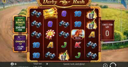 Derby Rush-demoen er en av deres nyeste utgivelser utgitt av BGaming. Denne spilleautomaten ble lansert tilbake i 2026 og i tillegg er bygget rundt et Horse racing thrills with derby excitement-tema. Den har Low-Med volatilitet en RTP på 97.2% og en maksgevinst på en gevinstgrense på 5 000x innsatsen din.