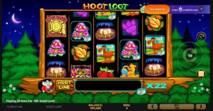 Denne spillbare demoen av Hoot Loot demo er en tittel de fleste spillere ikke kjenner til. Denne spilleautomaten har et Cartoonish owls guarding forest treasures-tema og debuterte i 2015. Denne spilleautomaten tilbyr Med volatilitet en RTP på 97% og en toppgevinst på 1 563x innsatsen din.