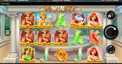 O potencial de top win de Diwinity é 1.000x, ou seja, para cada $1 apostado, o top win possível em um giro é $1.000.