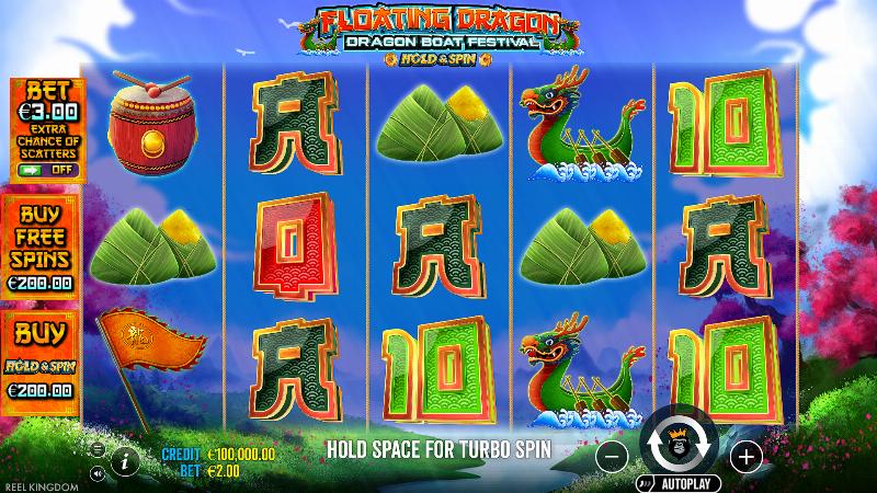 Nesta demo do Floating Dragon – Dragon Boat Festival, inclui o recurso de compra de bônus ("bonus buy"), que permite pular os giros e ir direto para a rodada bônus do jogo. Se você já viu streamers de slots na Twitch ou se você já conferiu clipes de grandes vitórias no YouTube, geralmente está vendo esses jogadores usarem a compra de bônus.