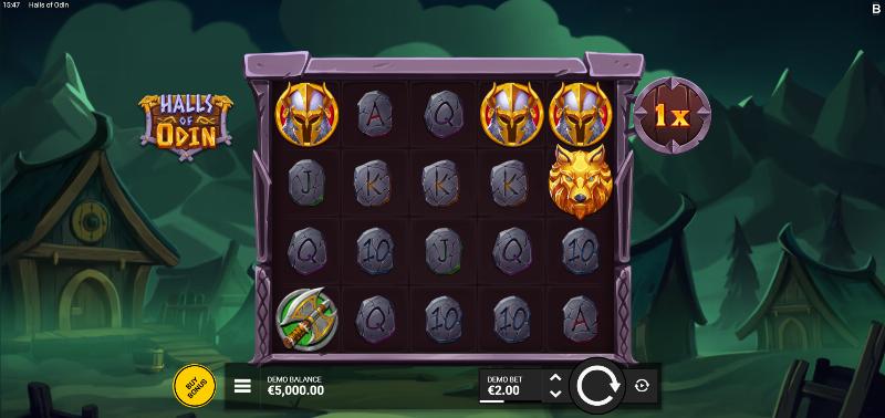 Na demo do Halls Of Odin, inclui o recurso de compra de bônus ("bonus buy"), que deixa você pular os giros e ir direto para a rodada bônus do jogo. Se você já acompanhou lives de slots na Twitch ou se você já conferiu clipes de vitórias enormes no YouTube, quase sempre está vendo esses jogadores usarem o "bonus buy".