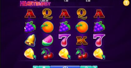 Heartburst é considerado um jogo construído com volatilidade High da Eyecon com retorno ao jogador (RTP) de 96.1% e max win de 3.000x.