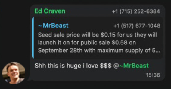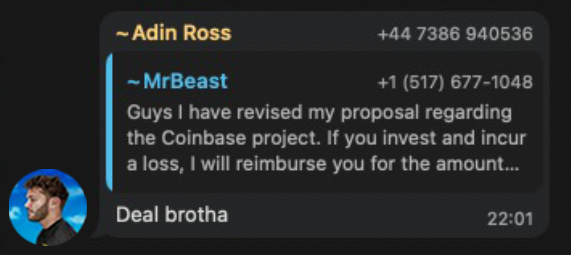 The scam happened in a chat group with Youtube superstars MrBeast and Mark Rober, streamer giant Adin Ross, and billionaires Tobi Lütke and Ed Craven