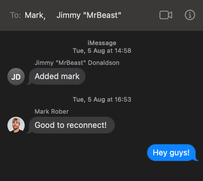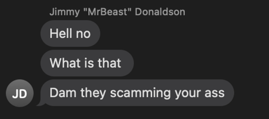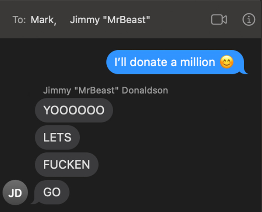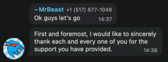 And then the next day MrBeast writes this in the group chat, that he has exciting news, and then he continues: