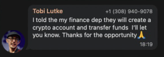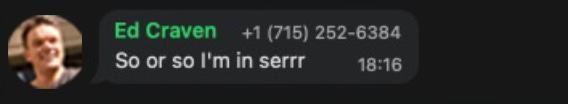 About a week later, I get a message on my personal phone number. This time it’s on WhatsApp and it says: