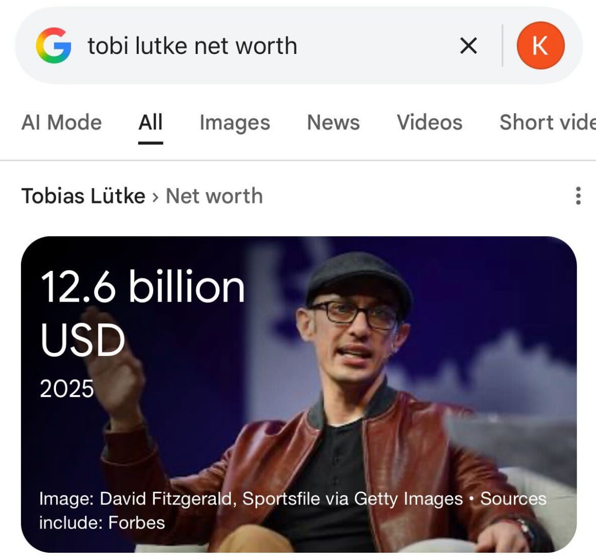 And the other billionaire, Tobi Lutke, is a bit more hesitant like me,