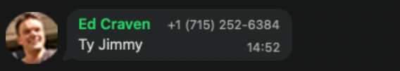 I’m entering in the middle of the conversations, and the first thing I hear is this voice message from Jimmy.