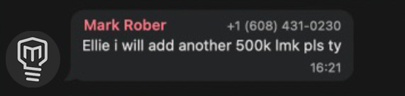 It takes a few hours and Bobby sends the money. This time it’s $500 000.