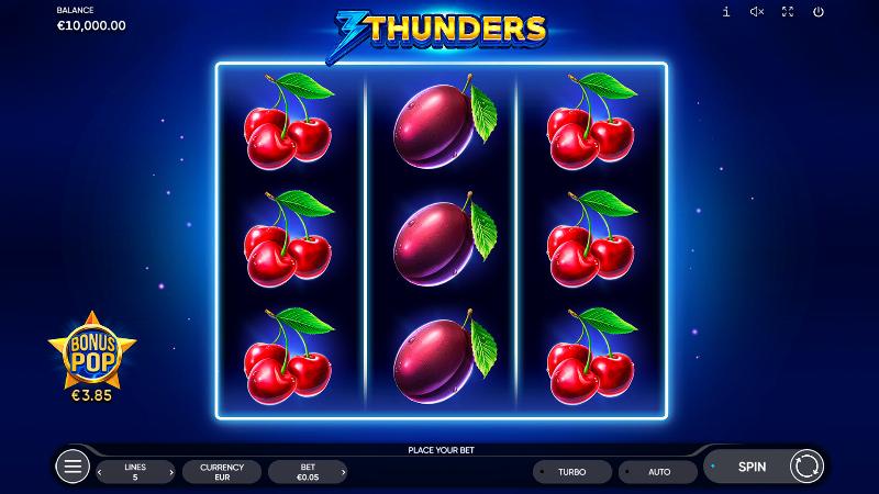 With a mere $1 stake with 3 Thunders you could win a jackpot of only $500. Another way to say that is your max win while playing 3 Thunders is 500x.