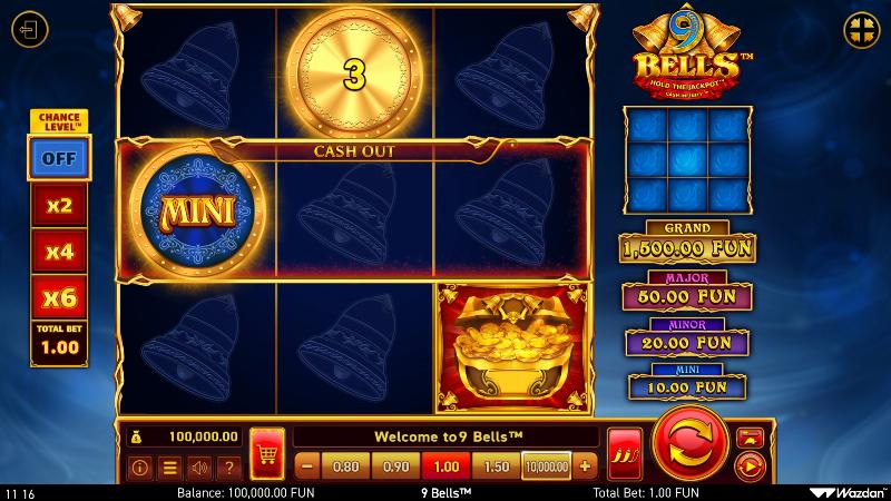 Placing a bet of $1 when trying your luck on 9 Bells there's potential to win a max win of $1500. What this really means is that the 9 Bells max win is 1500x.