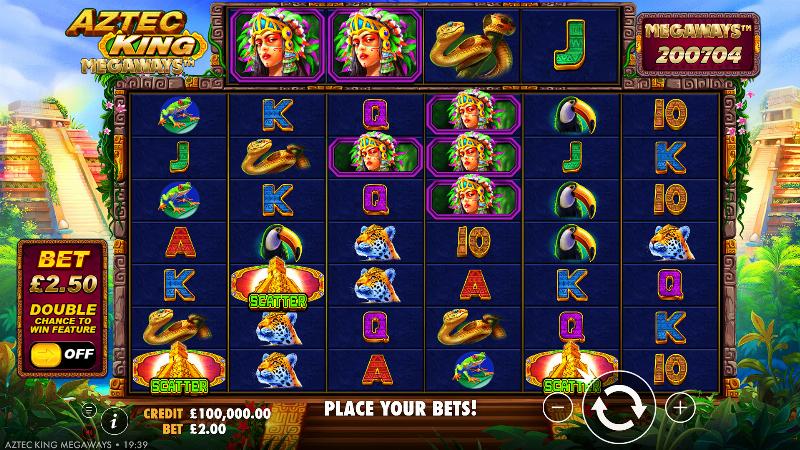 Kick things off by loading the demo version found below. Set up the game for 100 automatic spins to easily recognize the winning patterns as well as the symbols that offer the best rewards. Take as much time as you need with the Aztec King Megaways demo to gain confidence in the gameplay and experiment with betting patterns and discover its standout features.