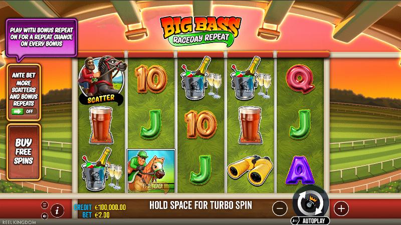 You can start the Big Bass Raceday Repeat demo for free without leaving this page — with no account required.