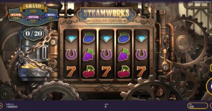 The Steamworks Gears Of Fortune is the latest release from Peter and Sons. It went live on 01/16/2025 and has a themed described as Whimsical steampunk machines powering fortune. It has a Med rating of volatility, an RTP of 96.03%, and a 1000x max win.
