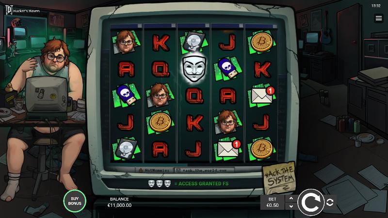 If you want to explore Hacker’s Haven we recommend that you get started by playing the demo game. Only fun credits are used so you won’t lose any real money during the free-to-play slot demo.