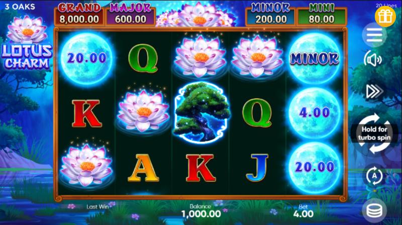 If you bet as little as $1 while playing Lotus Charm it's possible to win a jackpot worth $2000. This means that the max win on Lotus Charm is 2000x.