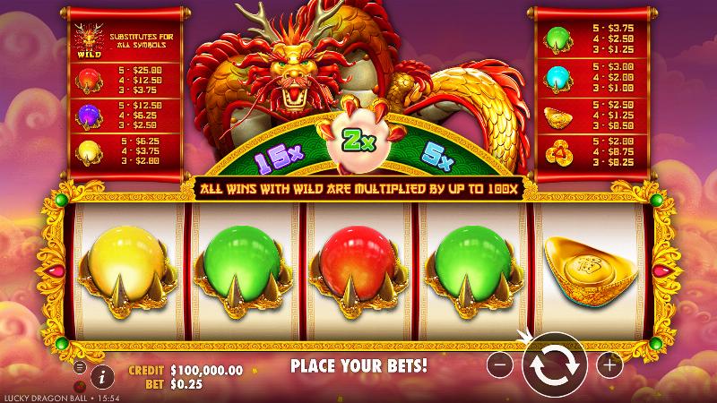 Gameplay for Lucky Dragon Ball Online Slot