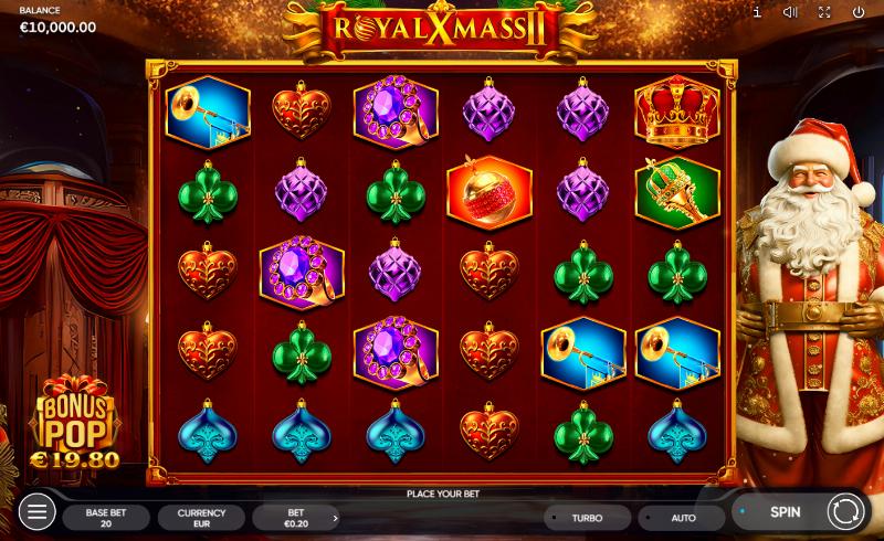 A fun way to dive into the Royal Xmass 2 slot is to just play with fun money in free demo mode. You will be spinning right away if you click play game