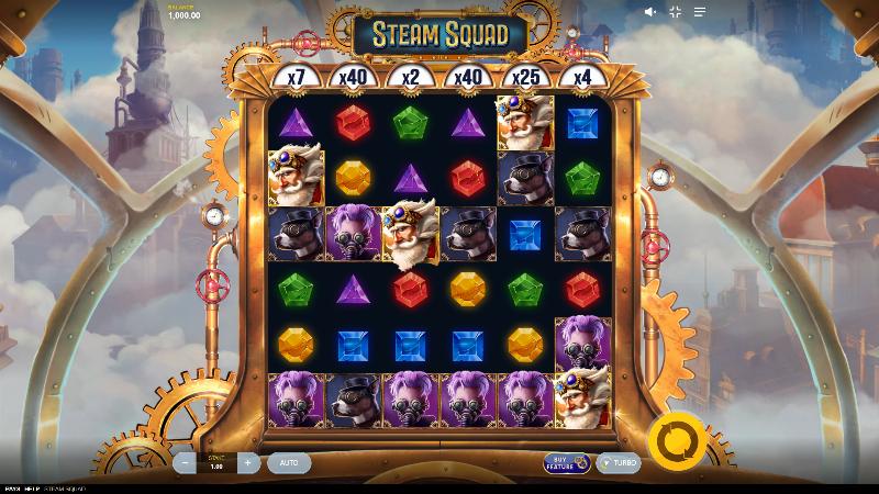 When you place a bet of $1 while spinning the reels of Steam Squad you may hit a max win of $3235. What this really means is that your max win while playing Steam Squad is 3235x.
