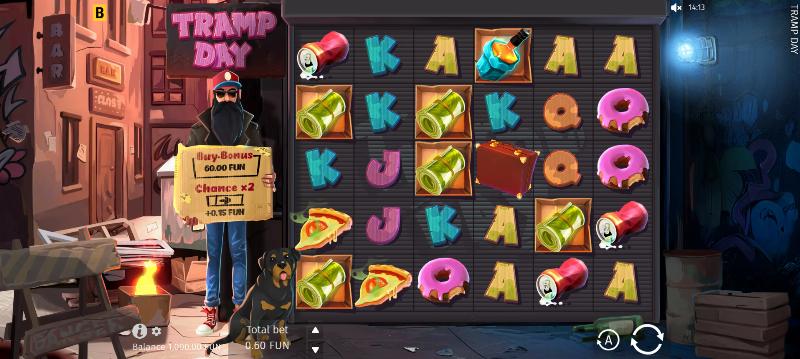 A no risk way to try your luck on the fun slot Tramp Day is to play the free demo game with fun money. All you got to do to play it is to click the game above here and you might hit your first win