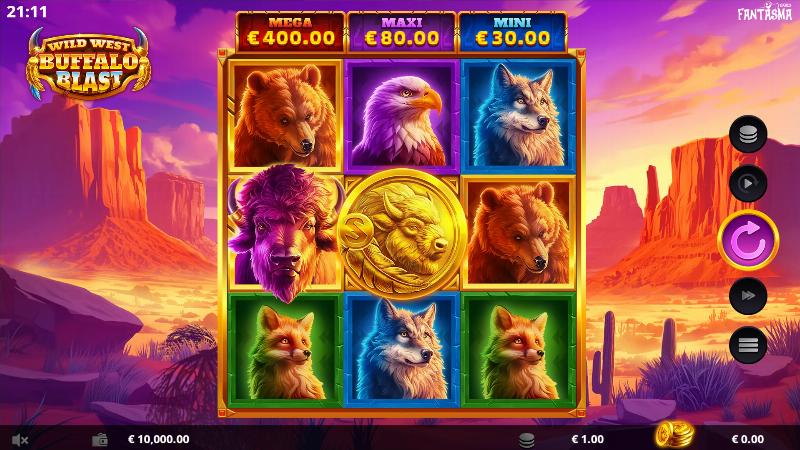 In Wild West Buffalo Blast maximum payout can reach 10000x. For only a $1 spin you might secure a prize worth $10000 in the game.